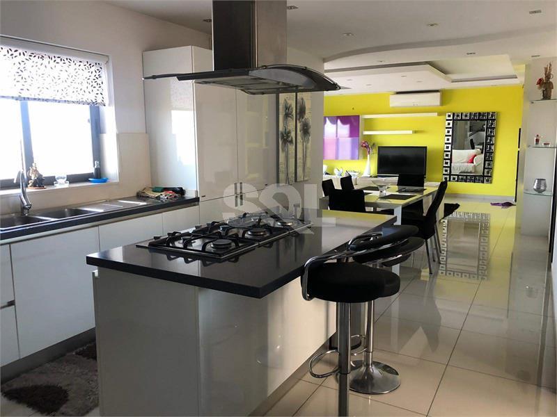 XGHAJRA - Corner Penthouse in the limits of Xghajra, with lovely sea and country views enjoying plenty of outdoor space. Layout comprises of an open plan kitchen/dining/living leading to the very large terrace, two bedrooms, main with walk-in wardrobe, a bathroom, and laundry. Rooms lead also to the terrace, comes fully air conditioned, equipped and includes a 1 car interconnecting garage.